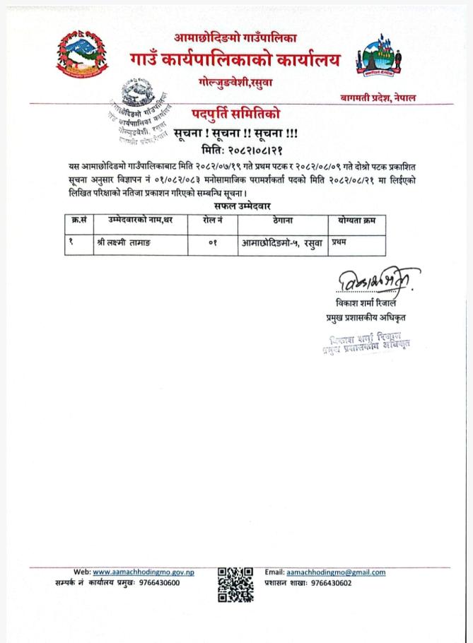 नतिजा प्रकाशन सम्बन्धी सूचना ।