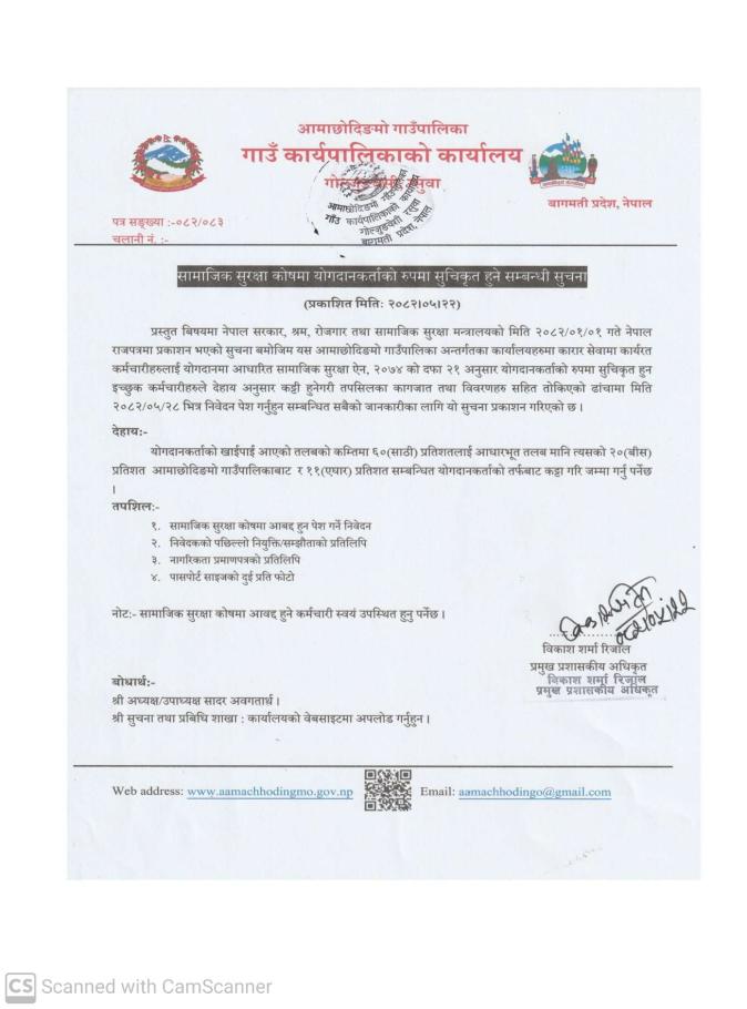 सामाजिक सुरक्षा कोषमा योगदानकर्ताको रुपमा सुचिकृत हुने सम्बन्धी सूचना।