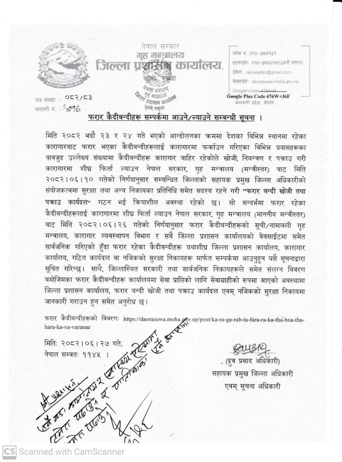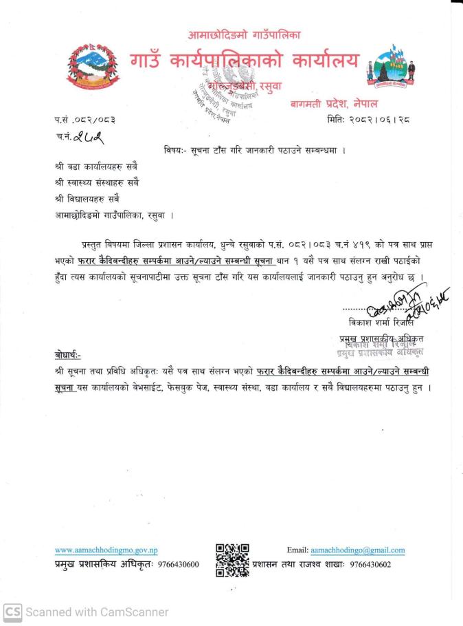 सूचना टाँस गरि जानकारी पठाउने सम्बन्धमा।